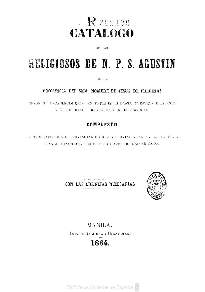 La clave figura en esta publicación: Catálogo de los religiosos de Nuestro Padre San Agustín de la Provincia del Santísimo Nombre de Jesús de Filipinas desde su establecimiento en estas islas hasta nuestros días, con algunos datos biográficos de los mismos, impreso en Manila en 1864.