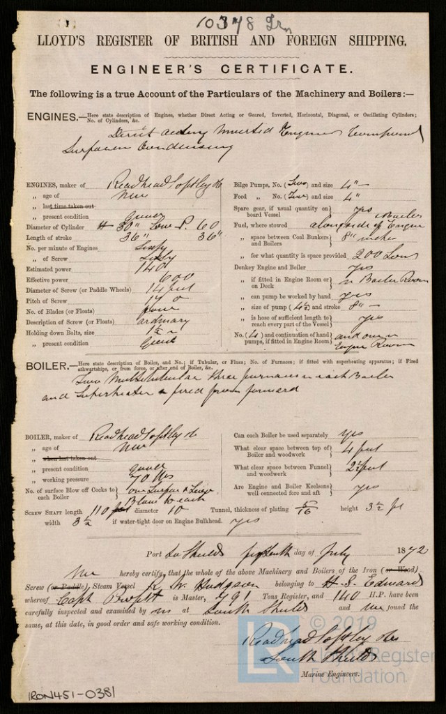 Pero no era el dueño de su barco homónimo. Tal atribución le corresponde a otro empresario: Harry Smith Edwards (1830-1898), prominente armador de South Shields, una pequeña ciudad situada en la ribera sur de la desembocadura del río Tyne en el mar del Norte. La urbe, que distaba 12 kilómetros de la mucho más grande Newcastle, se estaba labrando una reputación en la industria de la construcción naval, sector en el que vivía un momento efervescente gracias a la creación en 1865 de la compañía Readhead, Softley & Co..