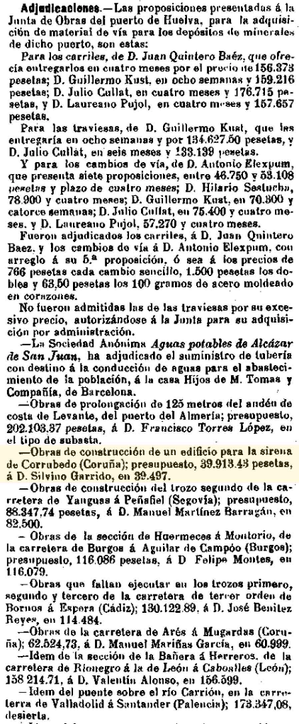 Apenas un mes, después era «aprobado el presupuesto para la adquisición, transporte y montaje de una doble sirena con destino al faro de Corrubedo, por su importe de 85.181 pesetas».