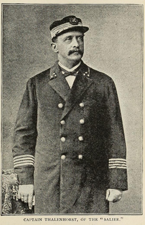 El Salier estaba gobernado por el capitán Thalmhorst y en la travesía fue escoltado en todo momento por el SMS Albatross, un barco de guerra alemán construido en 1871 con la expresa intención de operar en el extranjero, en cuyo currículum figuraba desde repeler a los piratas en los mares de China hasta proteger a los súbditos del país teutón en nuestra tercera guerra carlista.