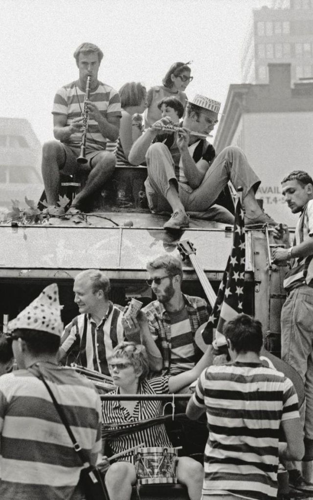 Kesey y su camarilla de lunáticos errabundos hicieron su entrada triunfal en Nueva York el 28 de junio y callejearon por los populosos barrios tocando música y apuntando con sus cámaras desde el autobús a los sorprendidos transeúntes, como si Netflix grabase tus reacciones al enésimo capítulo de El juego del calamar. Recogieron a Robert Stone, escritor en ciernes que en la década siguiente publicaría la magnífica Dog Soldiers. Por la noche montaron una juerga en un apartamento en Manhattan. En ella se dejaron ver dos de los compañeros de correrías de Cassady: el poeta Allen Ginsberg, que aún no se había dejado crecer la barba de santón hunduista, y un dipsómano Jack Kerouac, viejoven derrotado de mirada triste aferrado a una cerveza de lata. Por fin, al día siguiente, los Pranksters se aprestaron a cumplir el motivo original del viaje: visitar la Feria Mundial, de cuyas impresiones dejaron plasmada en un cuaderno esta contundente frase: «The World’s Fair is NOT a cool place».