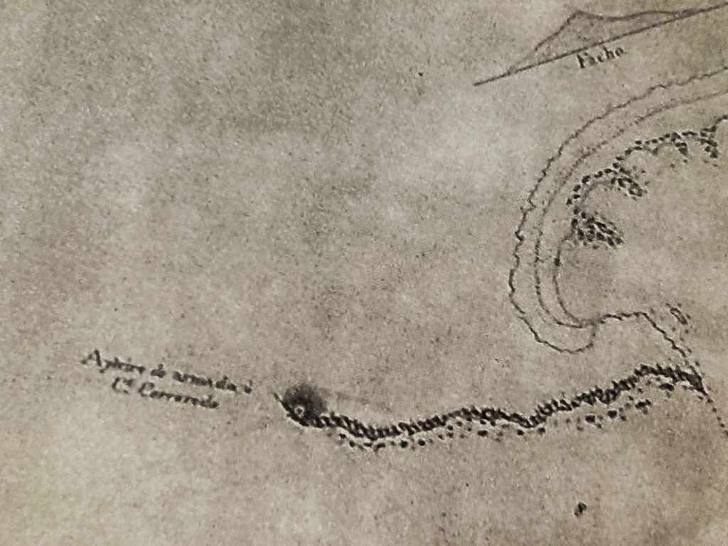 Imposible leer aquí el topónimo. Pero hay una ampliación de este mapa en el libro de Francisco Sánchez Fraga Santa María del Cabo de Corrubedo (coto del mismo nombre), publicado por la Diputación Provincial de A Coruña. Y ahí sí podemos vislumbrarlo: