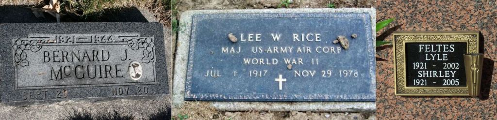 De los tres aviadores supervivientes, el primero en fallecer fue Bernard McGuire. Lo hizo el 20 de noviembre de 1944 en un entrenamiento en Ohio cuando era piloto instructor. Casualidades de la vida: también en Ohio murió el primer teniente Lee Willison Rice, el 29 de noviembre de 1978. El más longevo fue Lyle Feltes, que duró hasta el 2002.