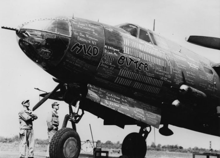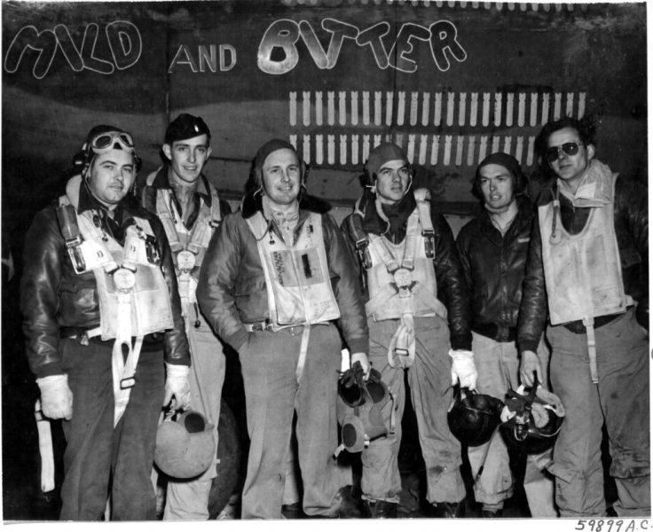 Así que, para inmortalizar el momento, los seis tripulantes posaron para una fotografía delante del avión. A su espalda, pintado en el fuselaje con letras de fantasía se podía leer el remoquete con que había sido bautizado: «Mild and Bitter», en alusión a una mezcla de dos tipos de cerveza habitual en los pubs ingleses: la leve y oscura Mild [‘Suave’] y la clara y robusta Bitter [‘Amarga’]. Al parecer, el apodo se lo había puesto el jefe de tripulación —un texano pelirrojo llamado William L. Stuart— tras oír a unos parroquianos en un garito local pedir unas pintas de aquel brebaje.
